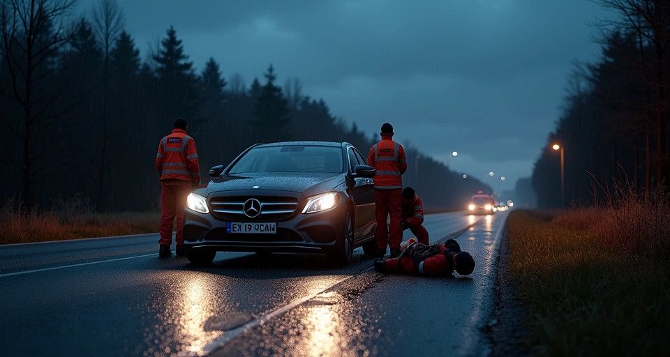 Tu7c przed godzin05 3:00 w nocy 16 listopada na prostym i nieo5bwietlonym odcinku drogi wojew f3dzkiej nr 447 w miejscowo5bci Mikstat Pustkowie dosz42o do powa7cnego zdarzenia drogowego. Pod nadje7cd7caj05cy pojazd marki Mercedes wtargn0542 pieszy.